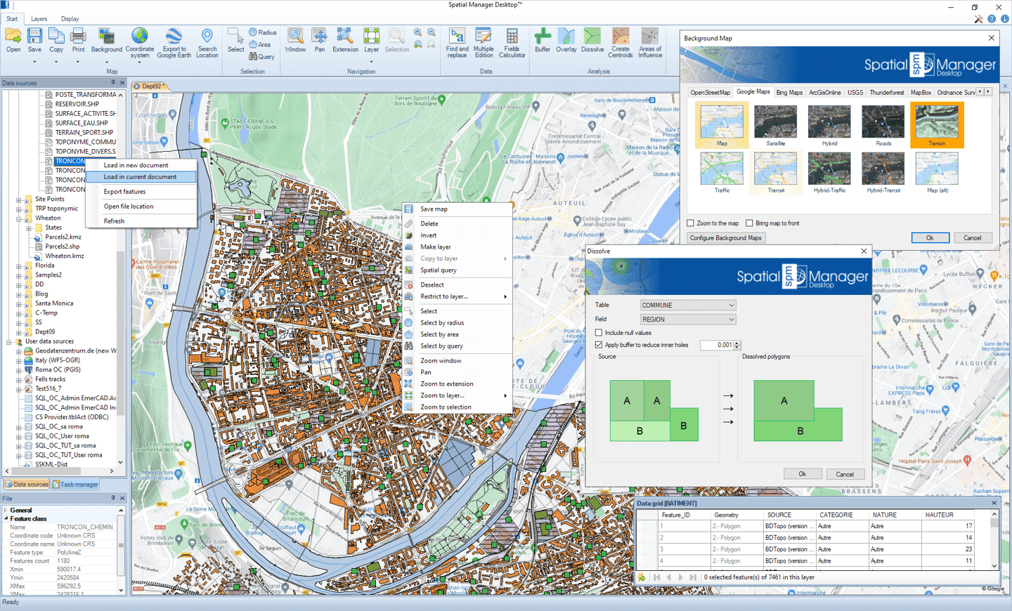 Spatial Manager Desktop™ is a Windows desktop application designed to manage spatial data in a simple, fast and inexpensive way. Developed by a group of professionals working in the areas of GIS, Planning, Infrastructure and Civil Engineering, it provides the user with powerful tools to address the most common tasks of management and operation in the world of spatial information